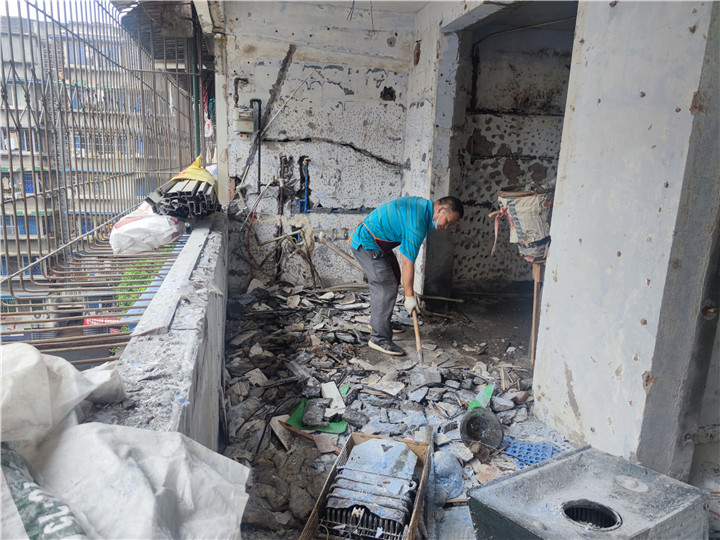 5.人工清運廢料,由于是老小區沒有電梯所以安排了人工清運