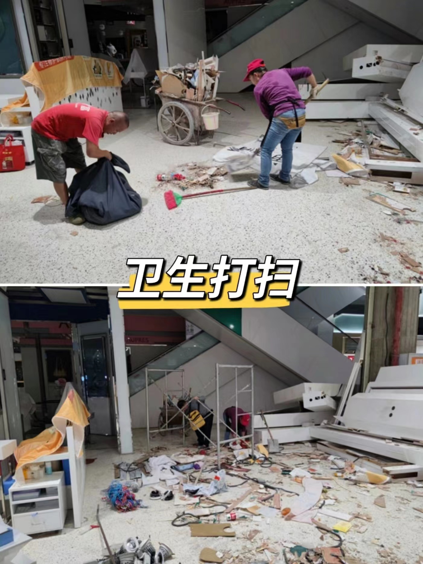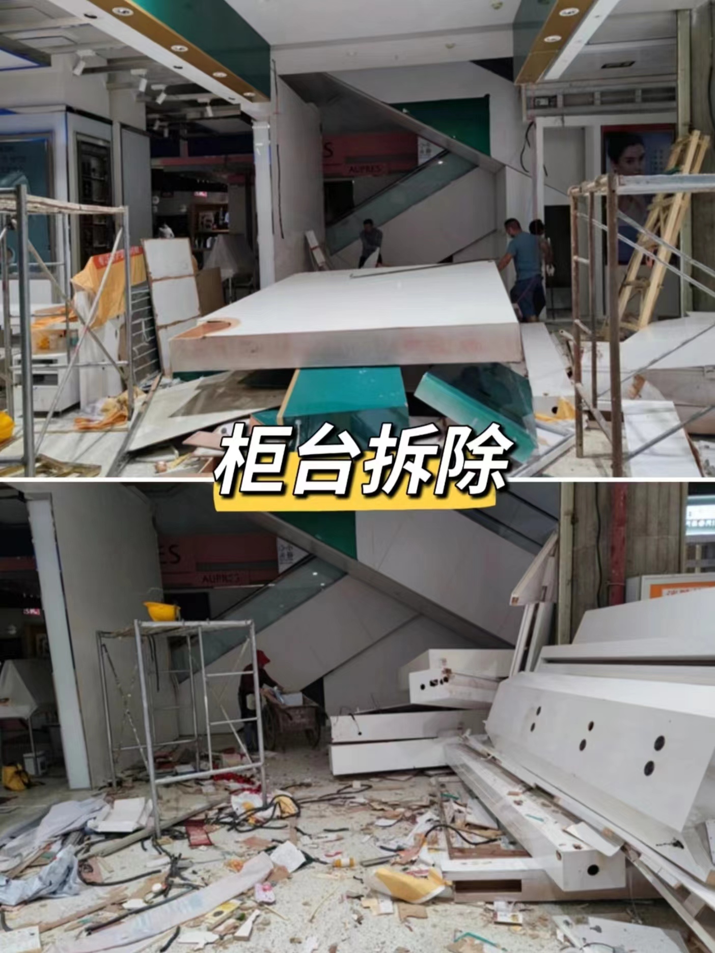 這個是商家提前了兩個多月通過線上找到我們,拆除內容很簡單,主要是拆柜等木制裝飾物的拆除,沒有墻體等比較費時的拆除內容。