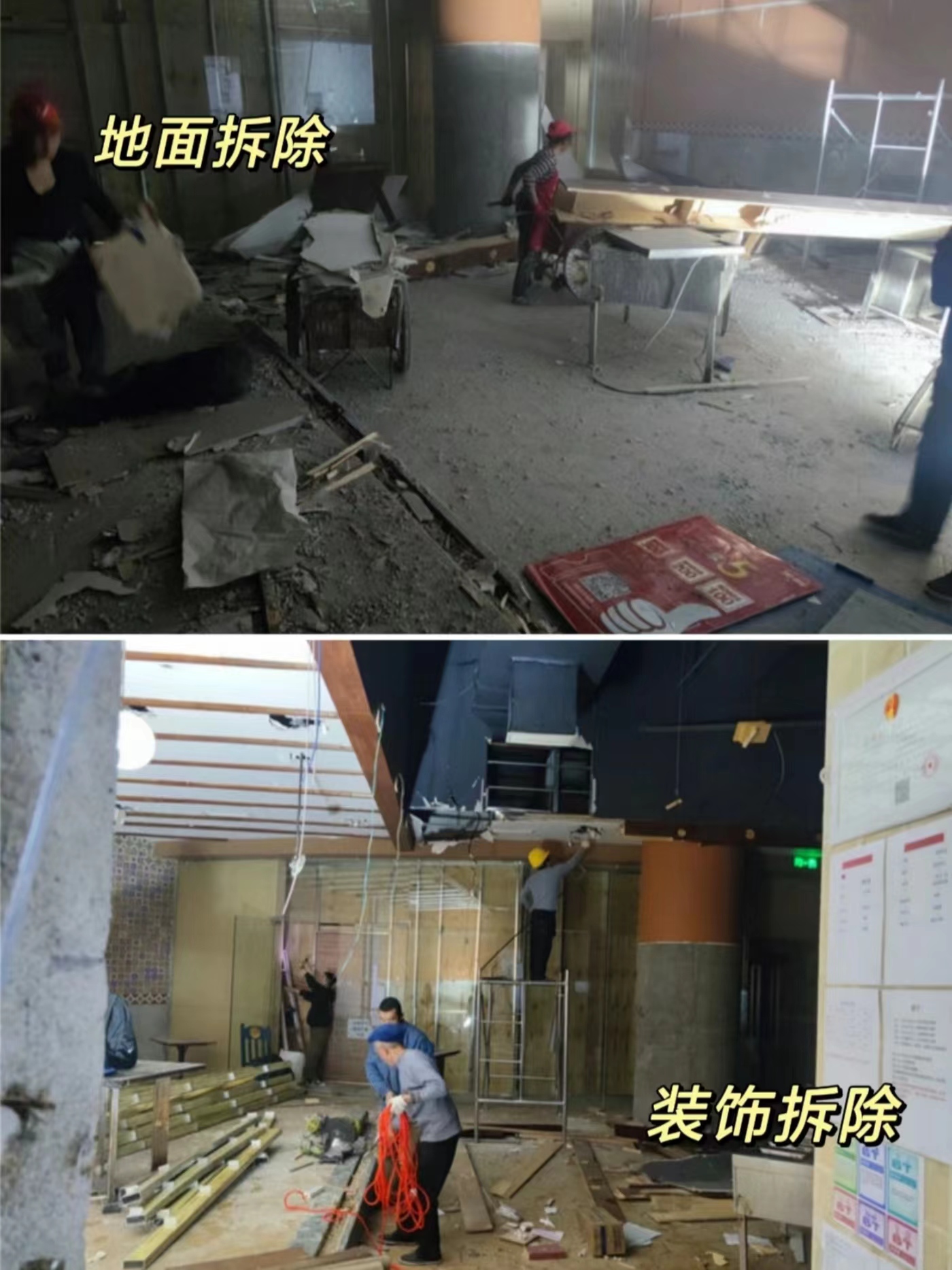 第二天的餐飲店拆除工作已經(jīng)完成,后面我會持續(xù)分享接下來每天的拆除施工進度。