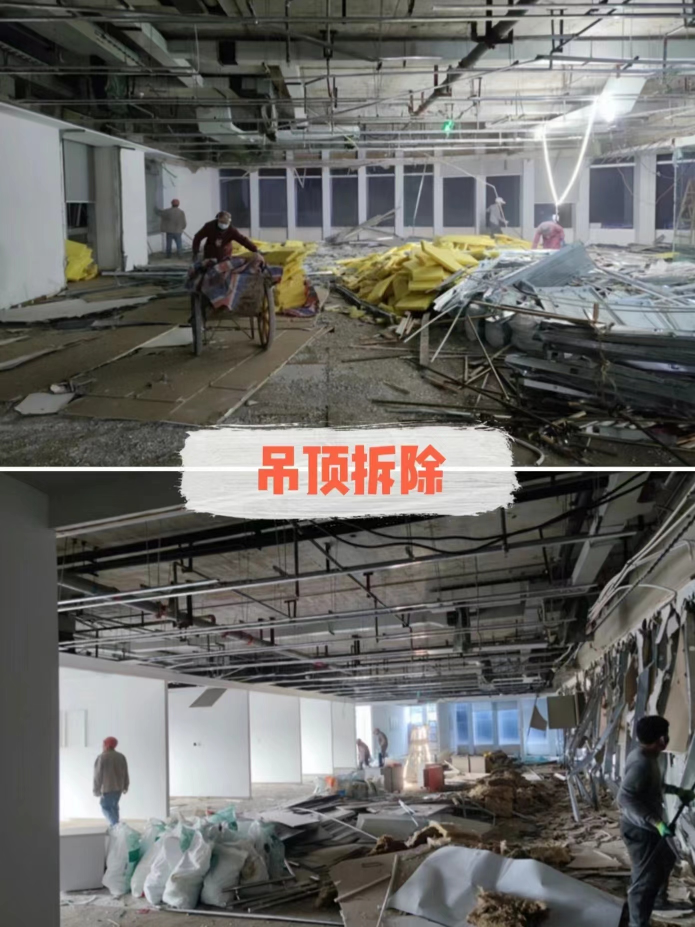 今天是城南天府辦公室拆除的第二天,我們第一天對大部分吊頂以及隔板隔墻進行了拆除施工,我們每天的建渣都是當天拆出來當天拉走,不堆放,工地保持整齊,規范施工。